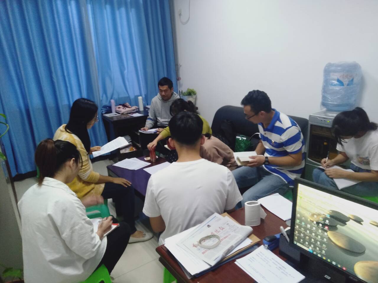 同时,王玥同志还带领大家共同学习了关于中国梦、“四个伟大”、“五位一体”总体布局、“四个全面”、“四个意识”、“三严三实”、“两个绝对”、“四个到位”等具体内容。活动过程中戴安泓同志等其他员工党员踊跃发言,纷纷表达了自己对此次学习的看法与理解“认真履行自身职责,从自身实际出发,抓实抓细抓好主题党日活动学习,定要读原著、学原文、悟原理,综合运用思想教育、理论教育、革命传统教育、形势任务教育、警示教育等形式,深入理解党的初心和使命的深刻内涵;要联系实际、深入思考,带着真情实感学、带着使命任务学、带着问题难题学”。