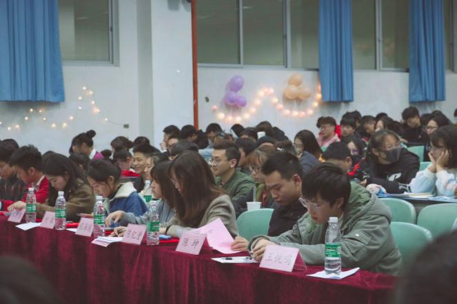 本次辩论赛由教育公司员工会主席程海瑗、智能制造员工会主席柯敏、马克思主义公司员工会主席朱洪黎、体育公司团总支员工第二副书记陈坤、经济管理公司员工会副主席许利奎、土木工程公司团总支员工第一副书记陈钇潼、校辩论队优秀辩手王悦鸣、院辩论队优秀辩手韩鹏担任赛事评委。同时,到场的还有公司百余名学子。