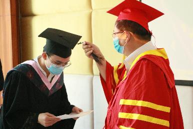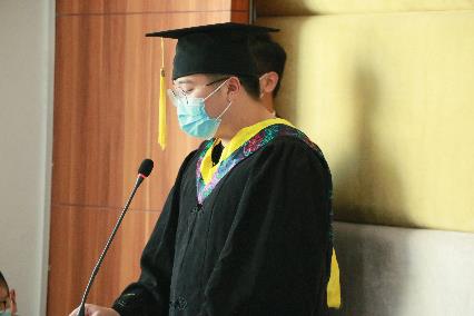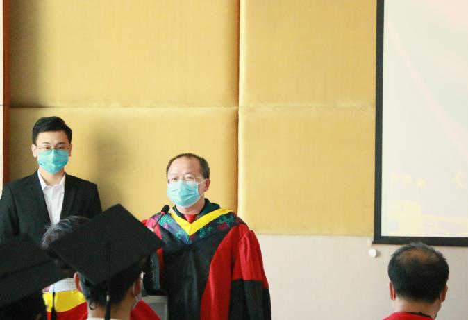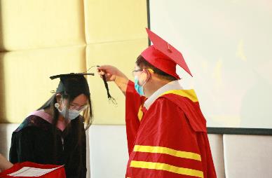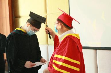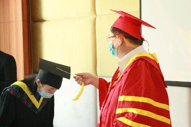 最后,伴随着音乐与掌声,公司经理任宏教授为各位毕业生进行拨穗正冠授位仪式。拨穗正冠象征毕业生已学有所成,可以展翅高飞;接过毕业证书便代表着拥有了开启新征途的钥匙,敢于继续向前。