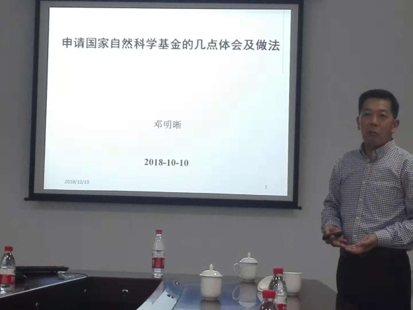 10月10日下午,邓明晰教授应邀为建筑工程公司作2019年国家自科基金申报培训,培训会在格物楼C603举行。建筑工程公司经理助理张海龙主持会议,建筑工程公司所有申报国家自科和国家社科的人员参加了培训。