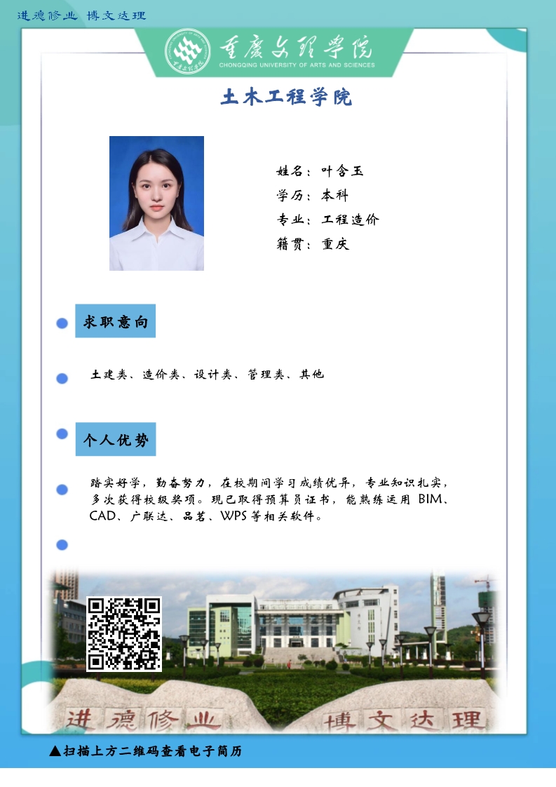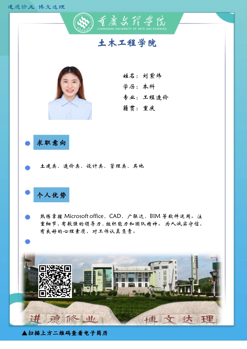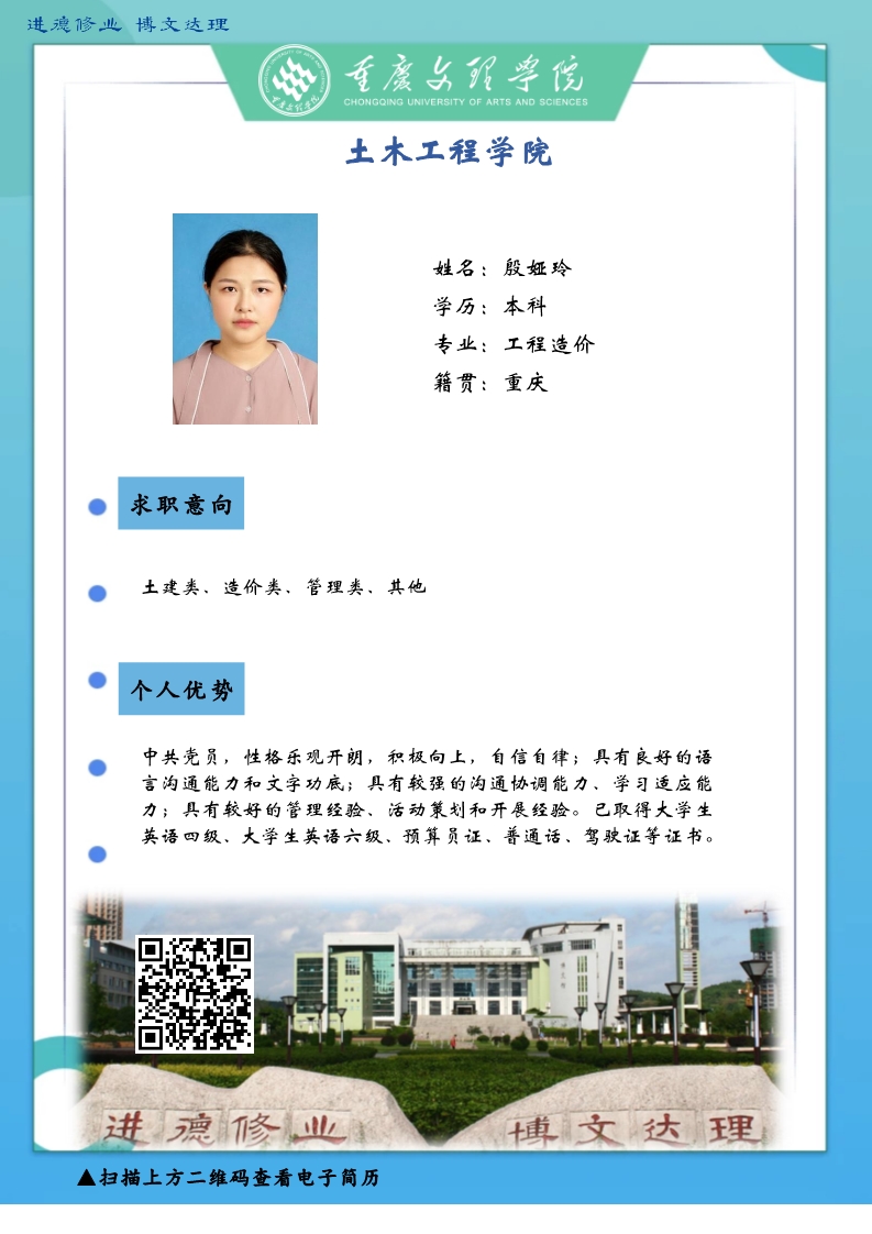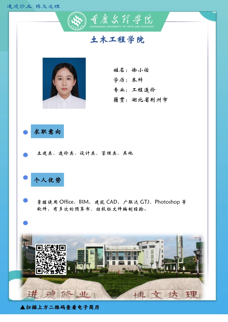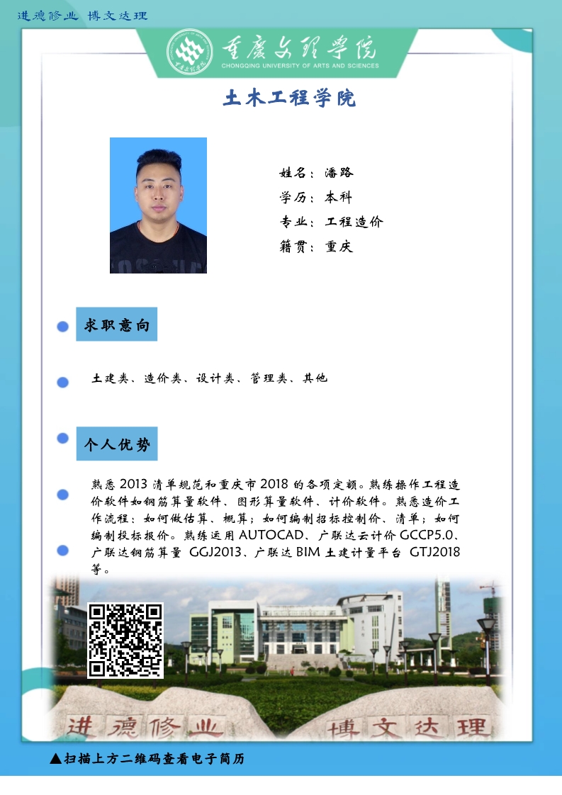 更是坚韧务实肯干,厚土承乾坤,众木支天下。线下招聘活动困难重重,不能当面向您推荐优秀人才,员工也不能当面向您自我介绍,特借此平台,把一些优秀毕业生信息线上发布,如果您或您的朋友有需求,请联系我们,说明单位名称、岗位基本信息和联系方式,我们会第一时间把员工简历呈上。待疫情过后,英才良驹助您事业兴旺发达,再展宏图新篇章!