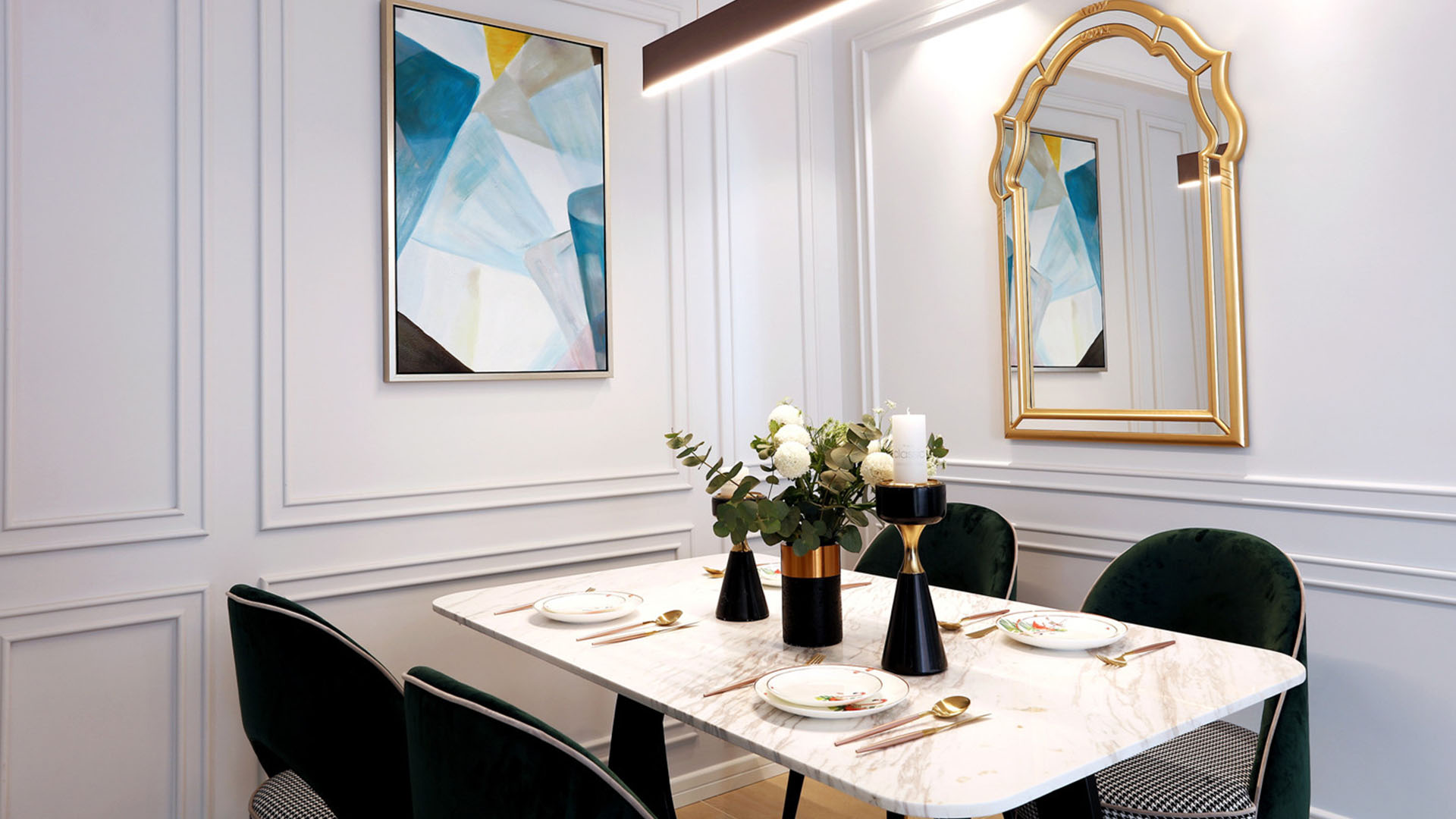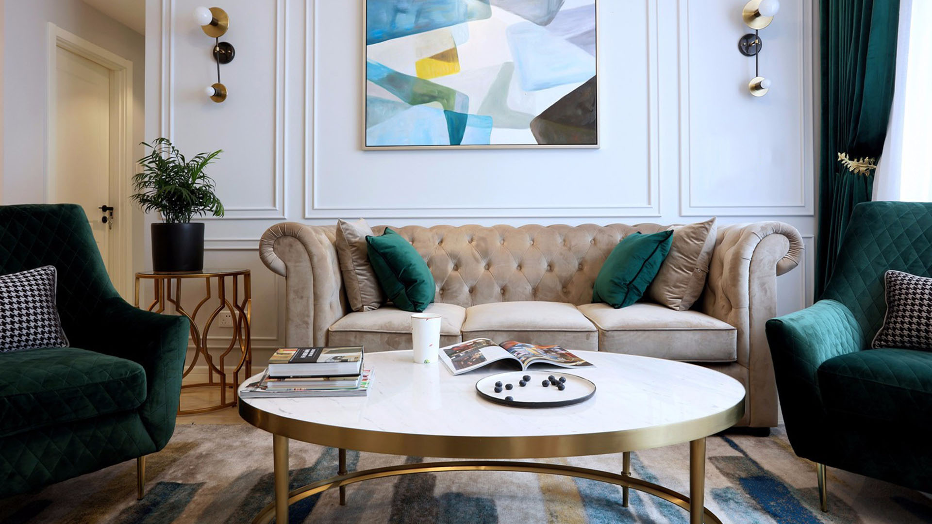 2021年3月13日,由我们工作室设计并装修的成都御景蓝湾1期北区2号房在绵阳市软装设计大赛获得一等奖,为我们工作室打响了名气。房间整体风格为轻奢风,获奖设计效果图如下:
