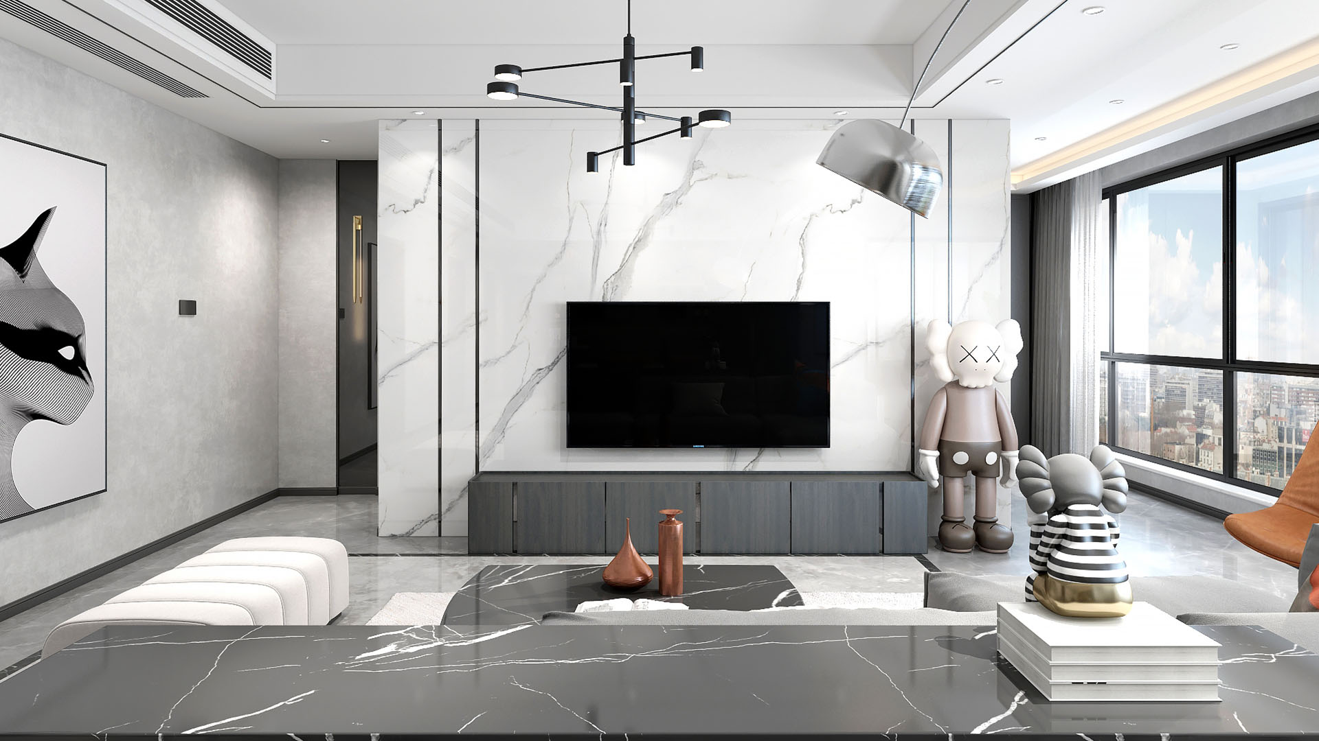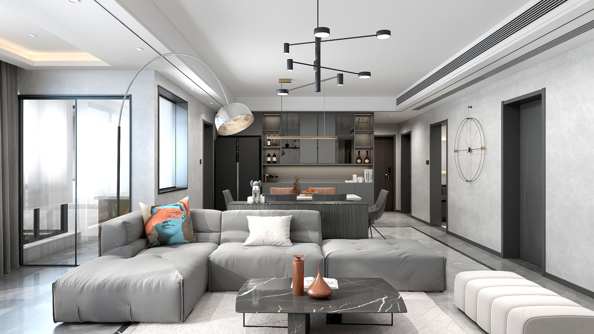 2019年12月,我们工作室接到了成立以来的第一份委托——对一位客户位于成都天府半岛的四居室新房进行装修。此客户喜欢黑白分明的色调、简单的造型,在经过和客户的商议与数天的设计后,方案敲定进行装修,成果受到了一家人的一致好评。验收图如下:
