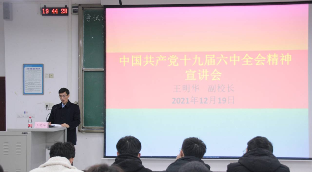 12月19日,王明华副董事长深入到所联系的员工班级,为土木工程公司2021级员工宣讲中国共产党十九届六中全会精神。