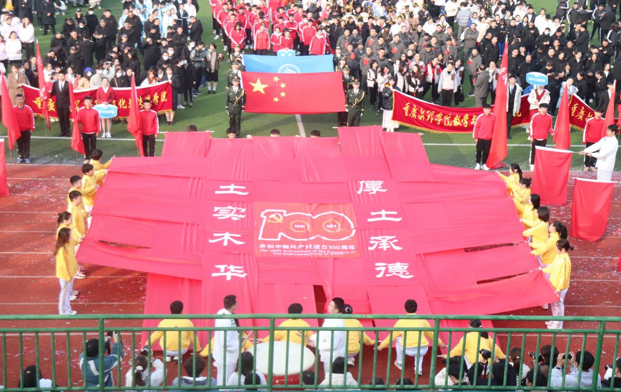 厚土育木层林茂,深基擎梁数宇奇。开幕式上,鼓声如雷贯耳,旗手步伐铿锵,教师队伍带队入场,展现出土木教师追梦扬威、奋勇争先的精神风貌;手持红扇,舞转红袖,扇舞方阵紧随其后,展示了土木学子的青春风采;红色横幅穿插而过,表达公司师生对建党百年华诞的深情祝福。