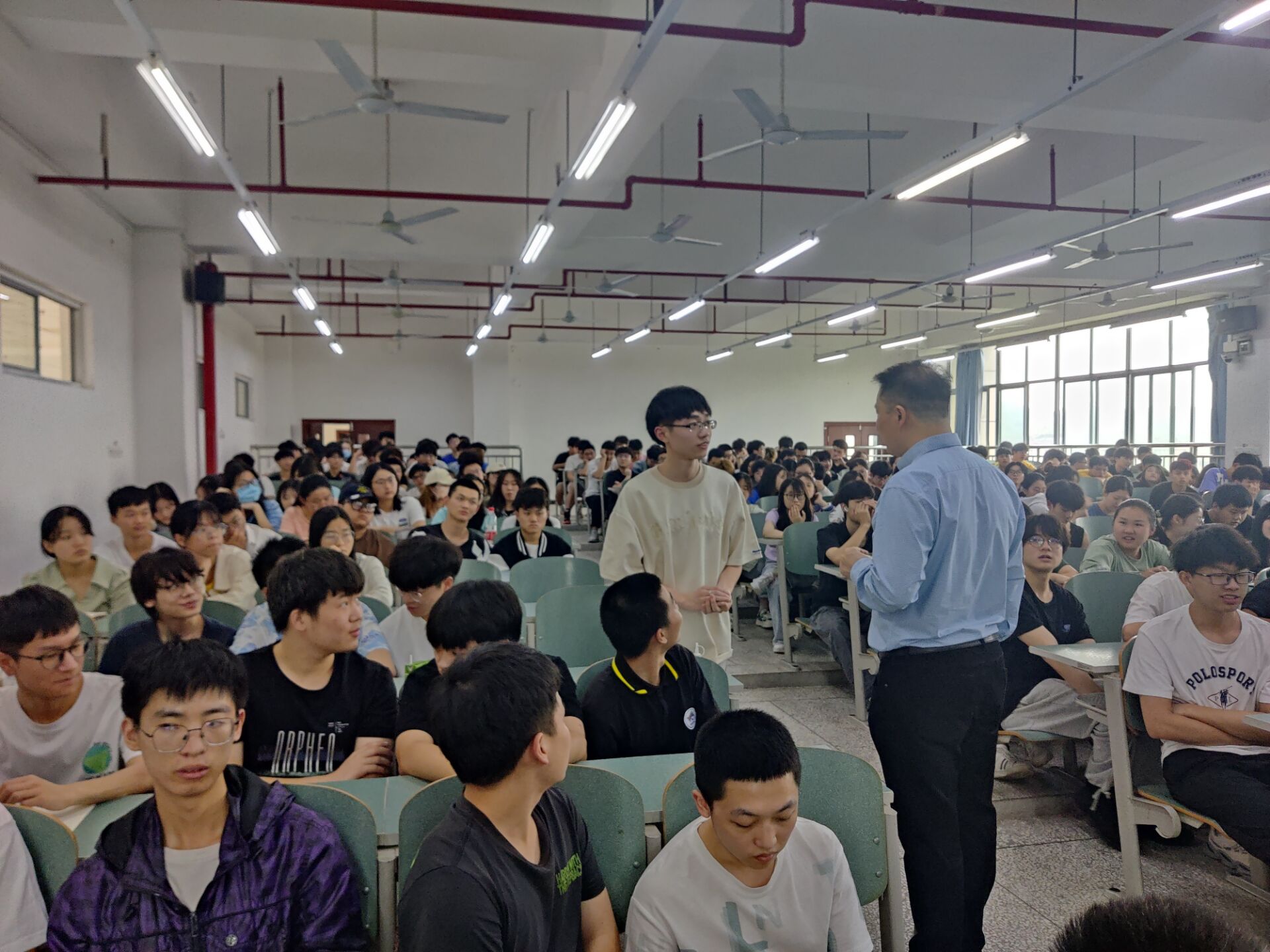 沈中友首先对老员工在校的学习问题谈了自己的意见,他表示,极少数同学们的学习积极性不高,学习动力不足等问题,根本原因在于同学们对未来发展的认识不清晰,应该及早树立目标,博览群书,提升自我。同时沈中友运用有关案例对同学们的人生目标、学业规划、为人处事、寝室生活等方面进行了深入分析,通过案例教育,向同学们提出老员工应该珍惜在校学习机会,打好专业基础,做好未来就业的准备。最后他就同学们提出的问题,给出了自己的建议。