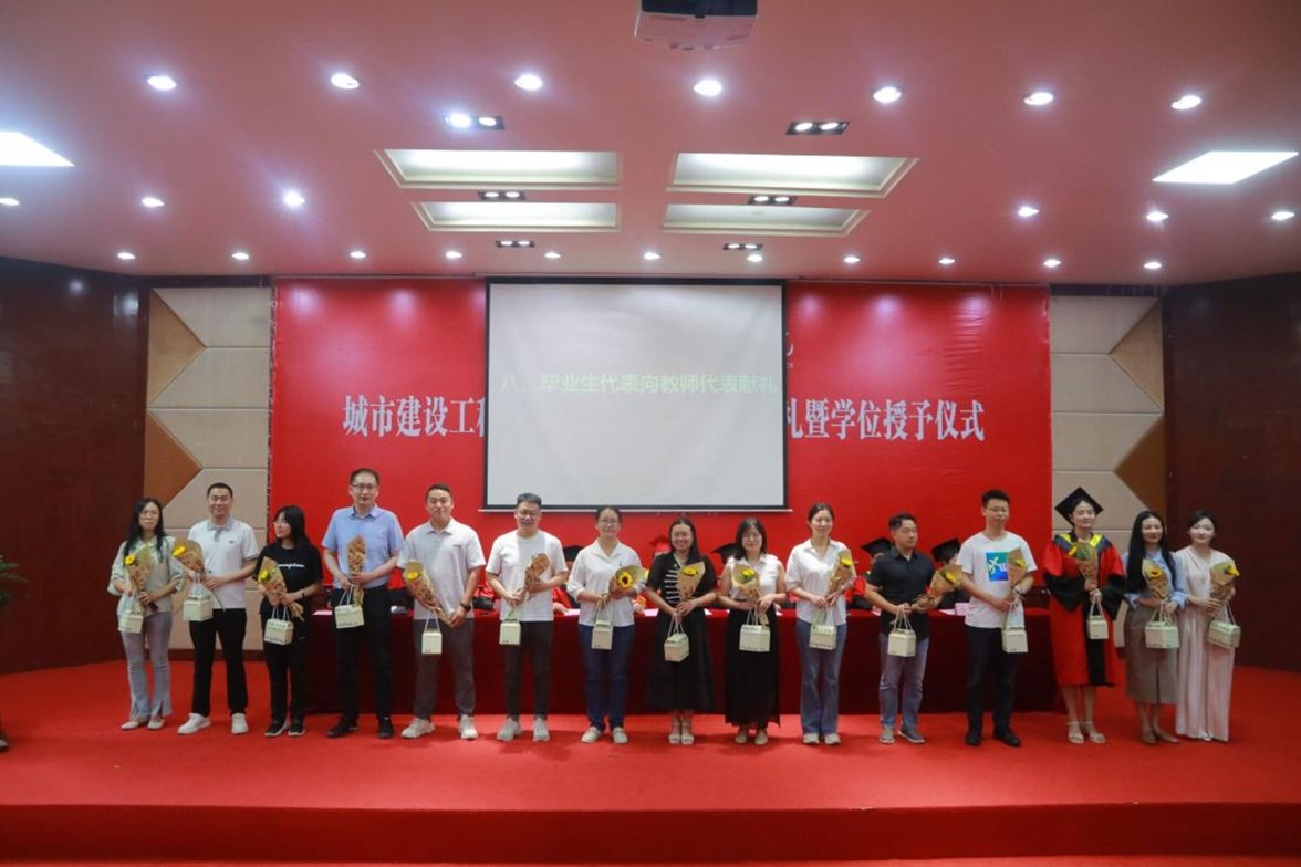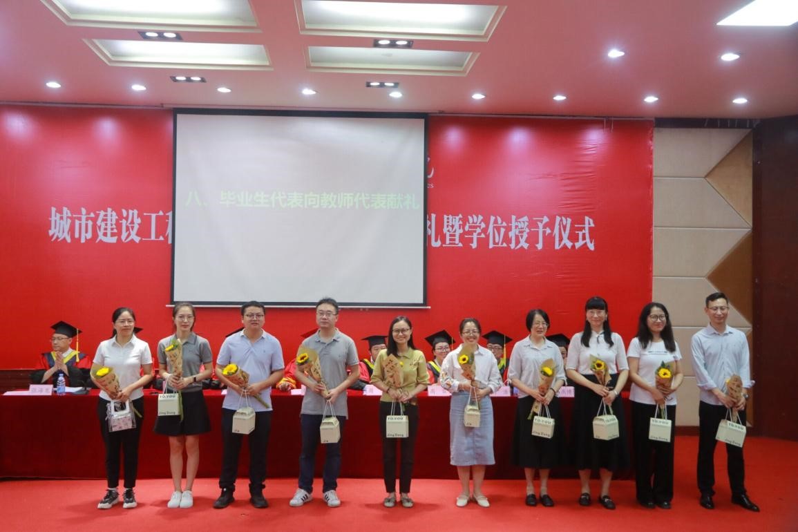 毕业生代表向家长代表、教师代表及学位评定分委员会献花、献礼,感谢一路相伴与支持。