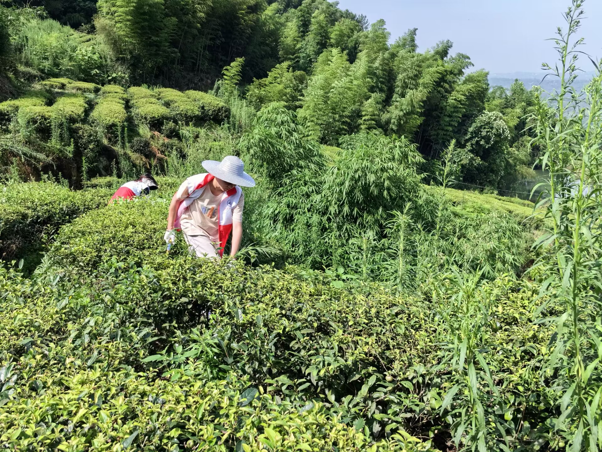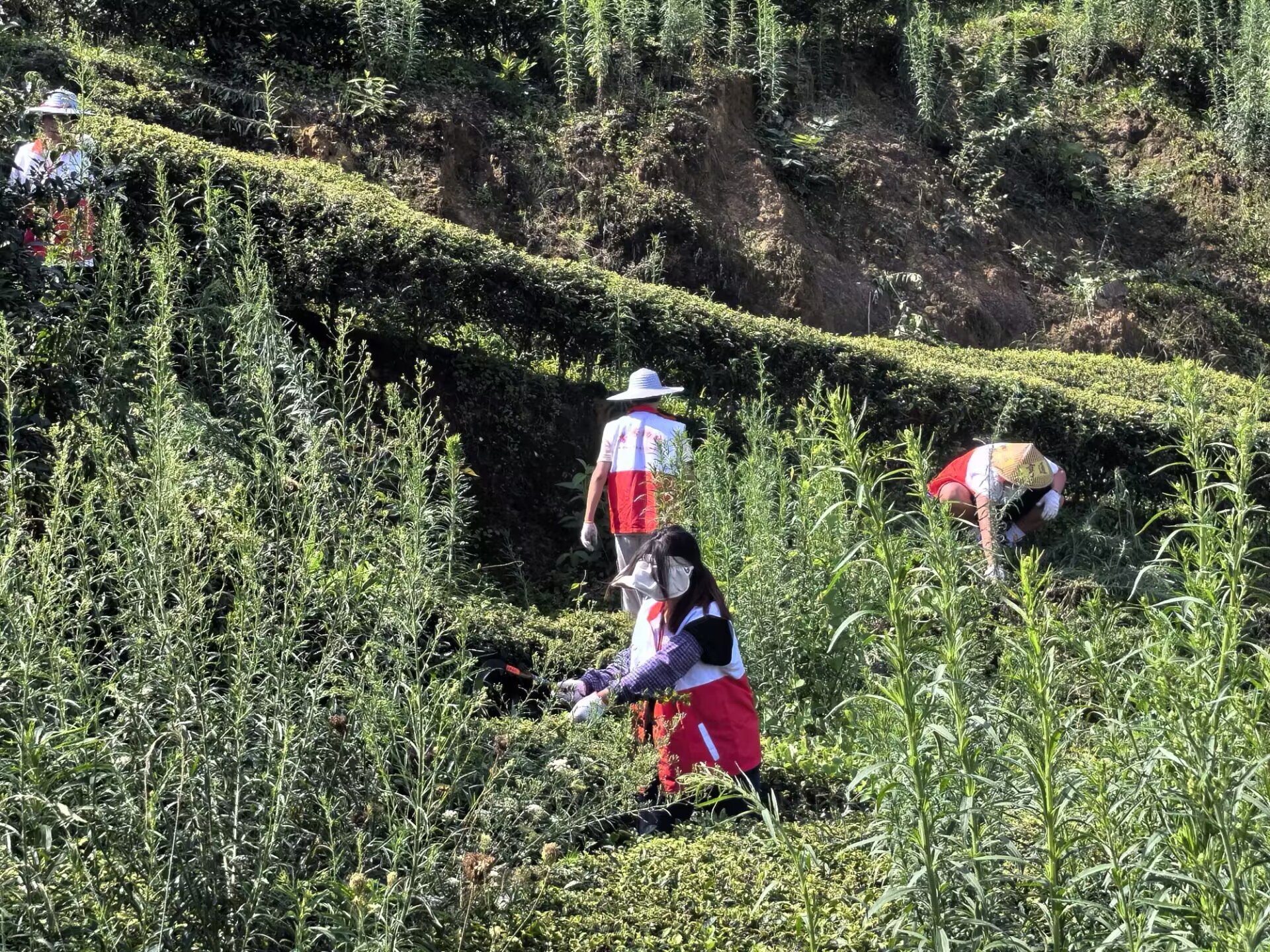科学规划,青春助力。依据茶园的地形特点和植被分布情况,志愿者们精心策划,公司老员工志愿者们怀揣着对农业的热爱和对社会的责任感,积极投入到锄草工作中。他们与经验丰富的农业技术员紧密合作,共同制定了详尽的锄草计划。项目成员被划分为多个小组,每个小组在农业技术员的带领下,由老员工志愿者们负责各自区域的锄草任务,将所学知识与实际操作相结合,为茶园的健康生长贡献青春力量。